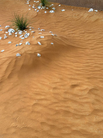Using sand as the canvas of the work, Sand, Wind, Sun draws attention to the unfamiliar within the familiar, creating a subtle cultural and regional dialogue embedded in the landscape itself. Carried by the wind, touched by the sun, and settled within shifting terrains, the stones hold a quiet presence—both fleeting and enduring—whispering of hope that persists even in the face of change. Scattered across mountains, greenery, and desert, they rest at the fragile threshold between permanence and impermanence, inviting contemplation of resilience, belonging, and transformation.